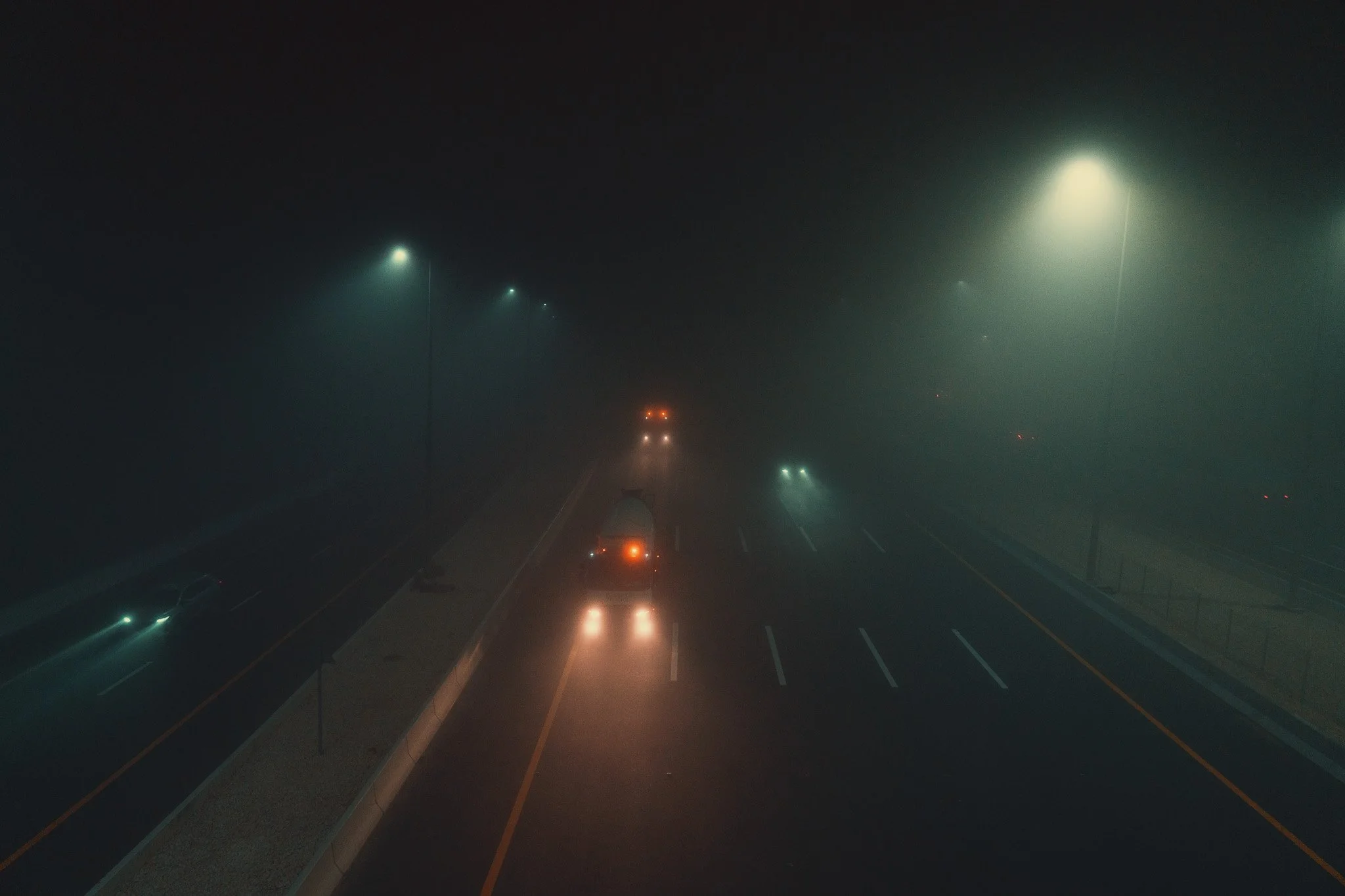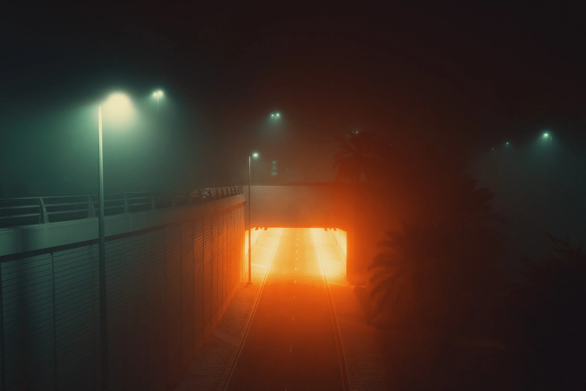 4am and the mist has rolled in. Changing weather coupled with 90% humidity drops visibility to just a few meters. Perfect for some street night photography!